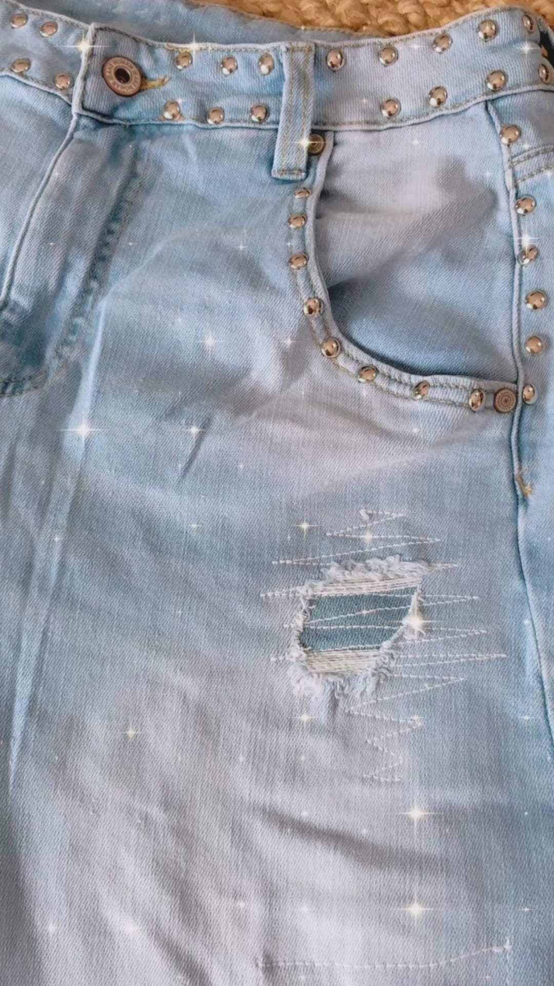 Les clous argentés sur le haut apportent une touche rock subtile. Les poches arrières et latérales en font un choix pratique.
