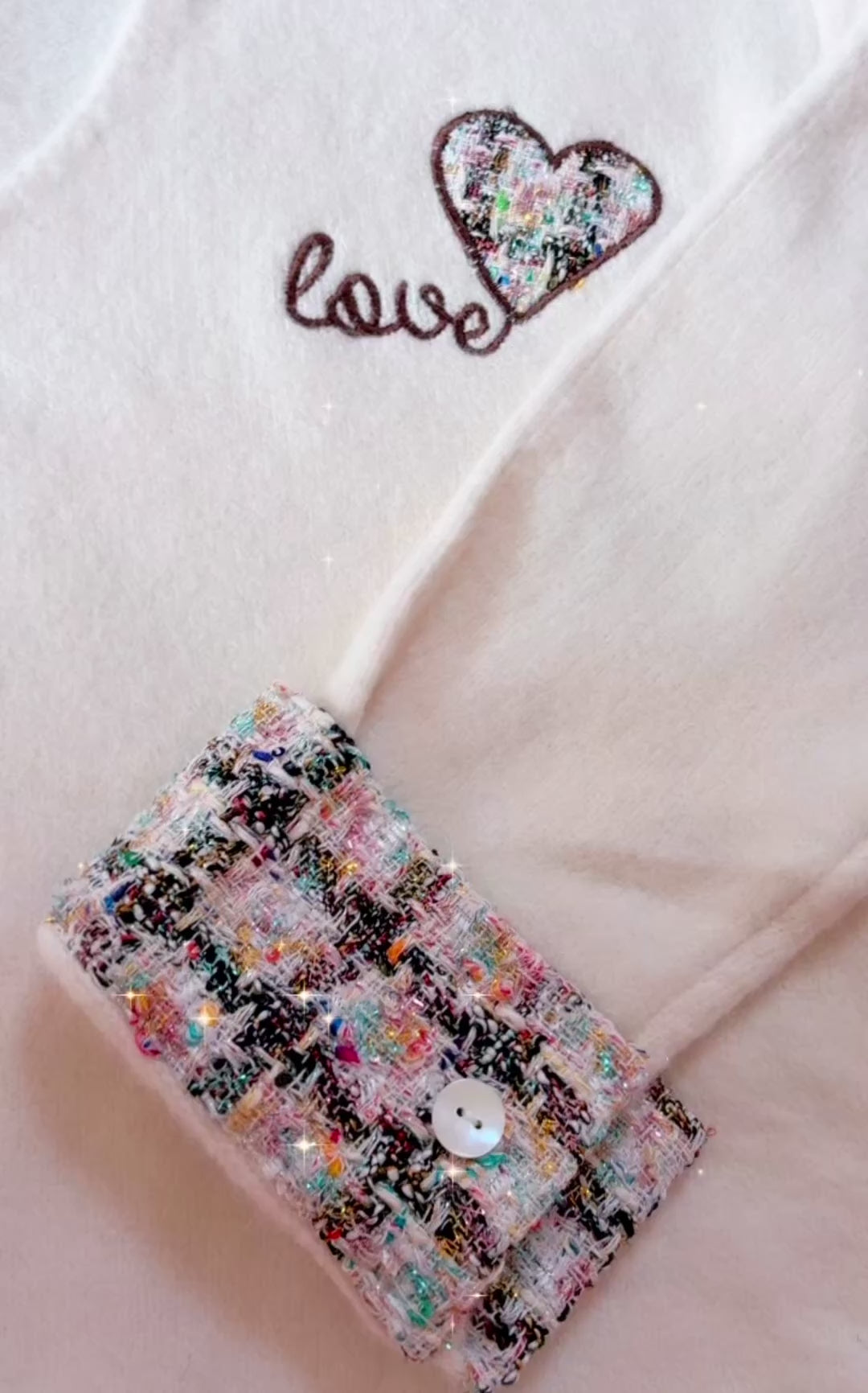 Ravissant et élégant pull crème col V VALOU. Un cœur brodé en tweed.orne délicatement la poitrine tandis que les revers dans la même matière en ornent les poignets pour un côté chic! . Doux, féminin et girly, il est parfait pour toutes les occasions. Taille unique, convient aux tailles 36 à 42.