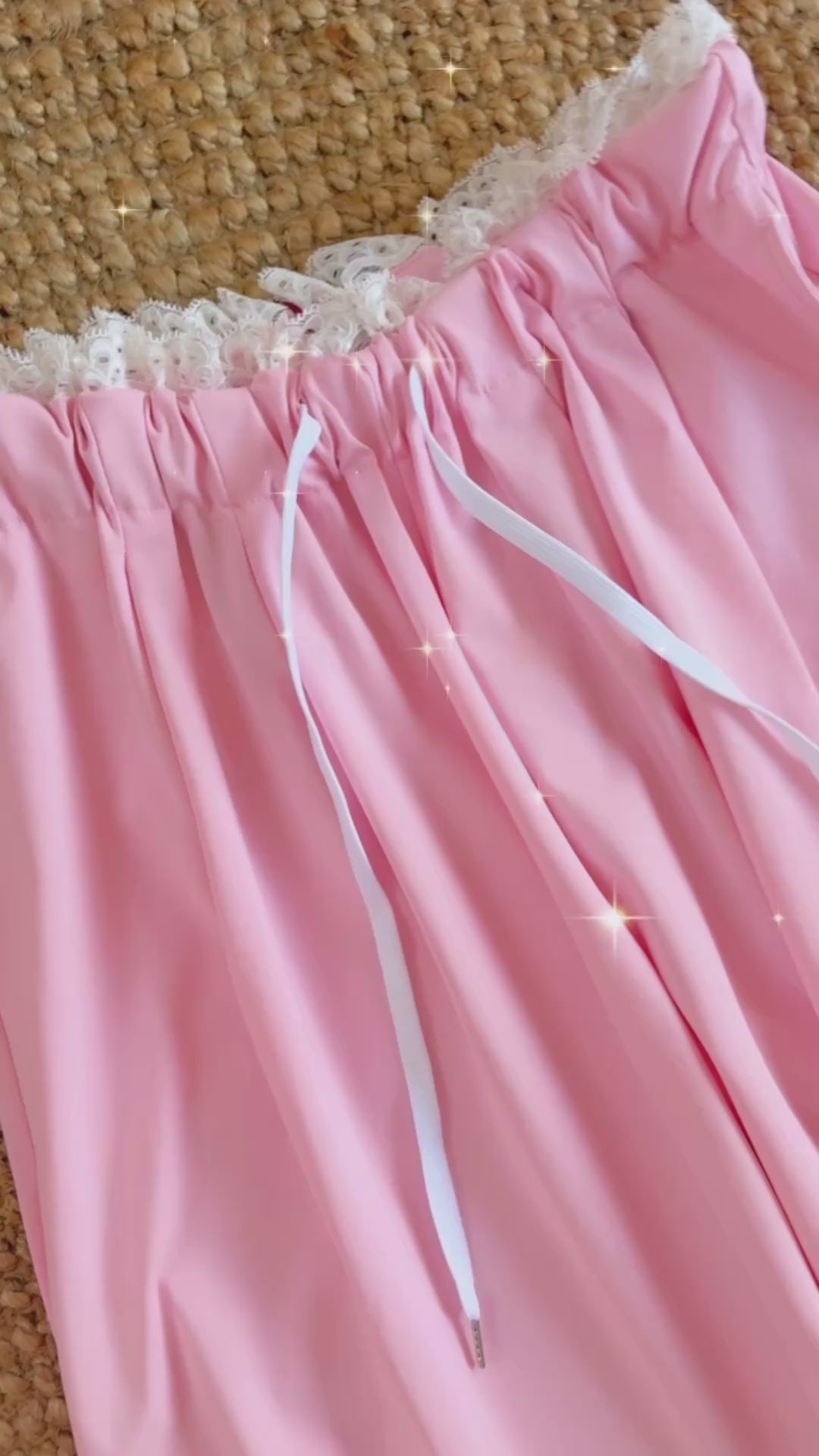 Le pantalon rose et dentelle LOUNA est conçu en tissu fluide pour un confort optimal. Sa dentelle blanche à la taille ajoute une touche élégante, tandis que la taille élastique et les cordons de serrage permettent un ajustement personnalisé. Sa coupe relax large vous apportera du confort !