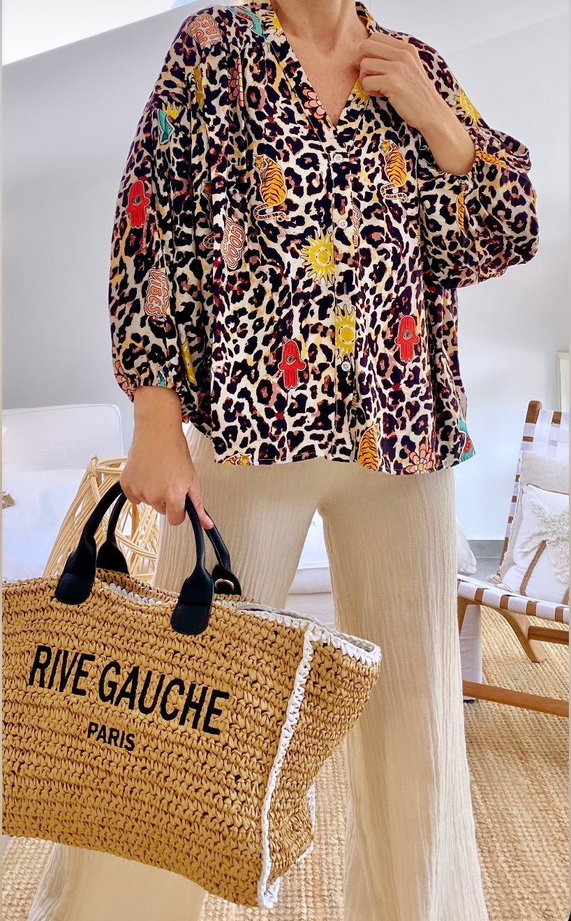 Optez pour une tenue pointue décontractée avec la blouse STELLA en viscose fluide imprimée Léopard par JS Millenium.